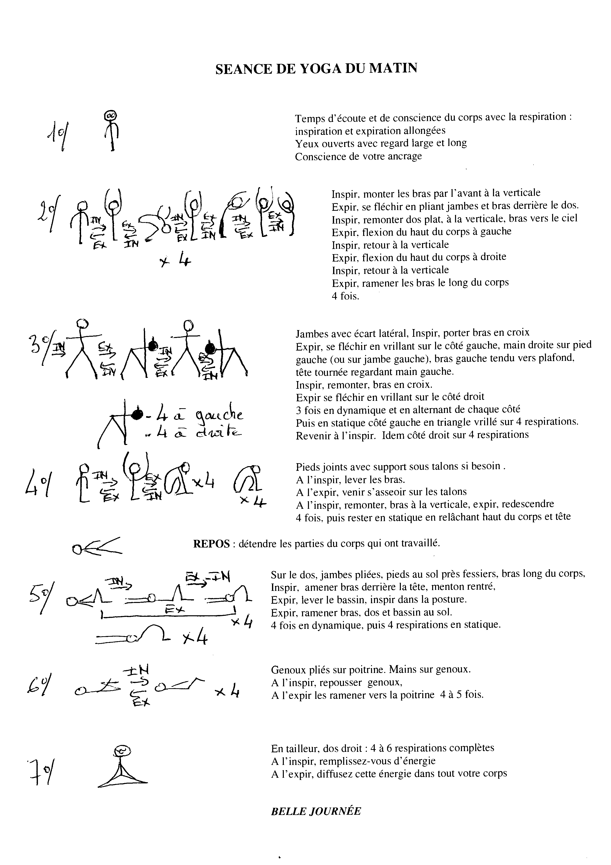 Au fur et à mesure de vos étirements à réaliser en toute fluidité, vous ressentirez progressivement l’énergie circuler dans votre corps et votre esprit s’éveiller, tout en respectant votre rythme.